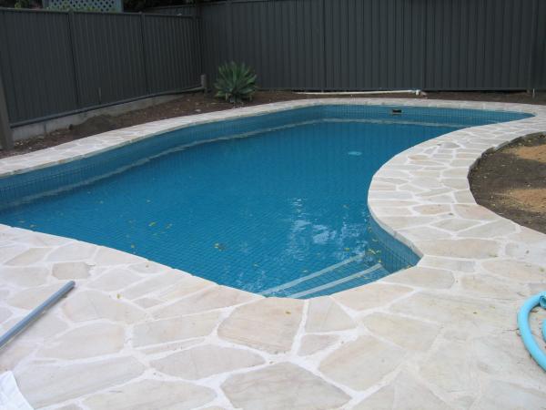 Pool coping made from random paving